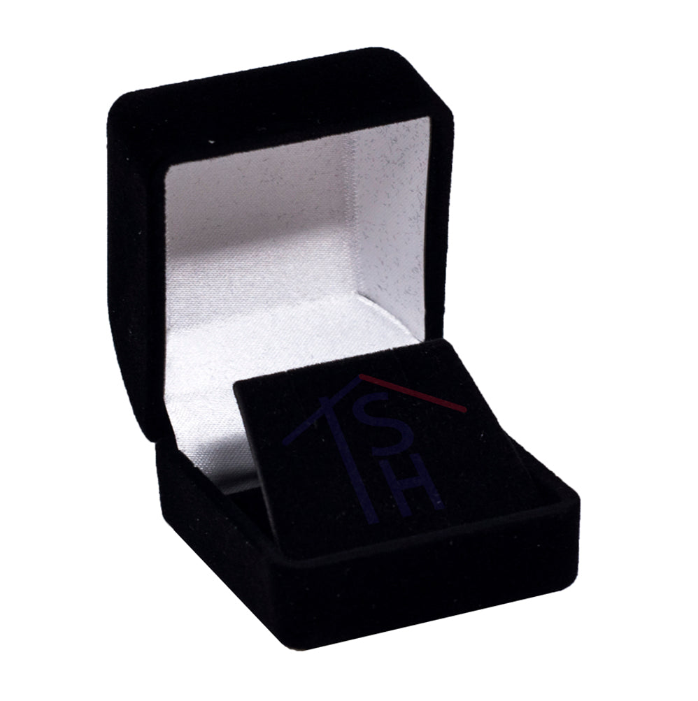 Square flocked velour earring box* Feature velour finished boxes and inserts. Tuck-in packer included.