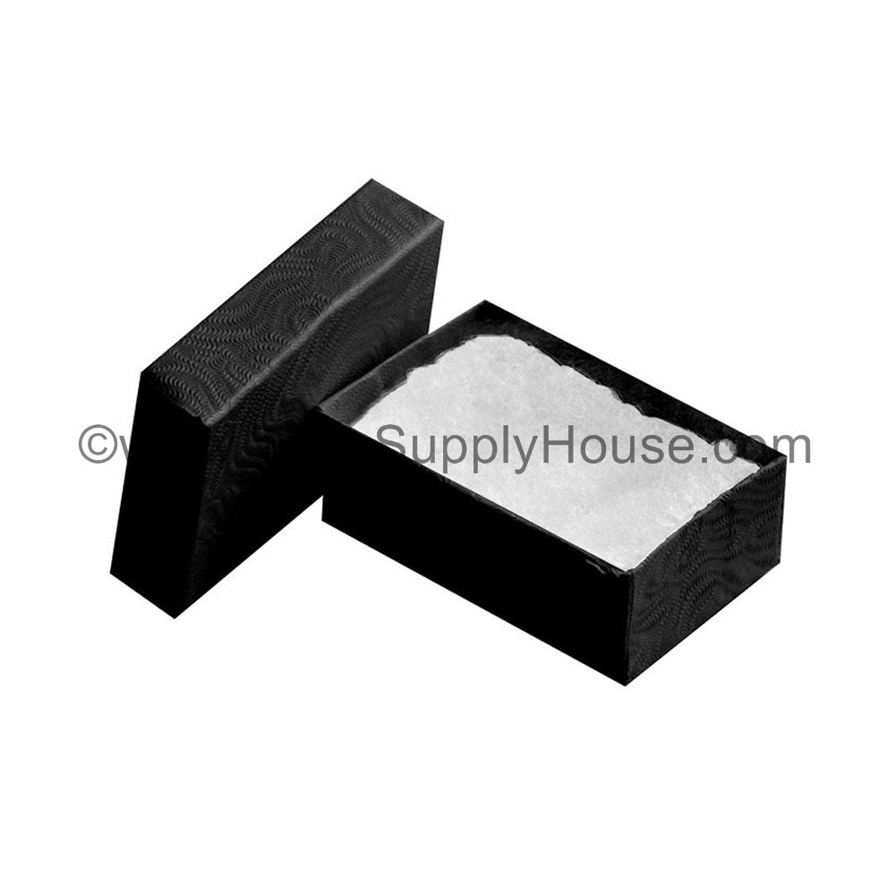 BLACK SWIRL TEXTURE Paper Cotton Filled Boxes, 2 5/8" x 1 1/2" x 1"H