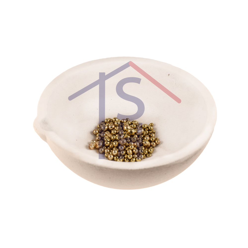 Shallow ceramic melting dishes made of clay bonded fused silica for melting precious metals at temperatures up to 2800°F.