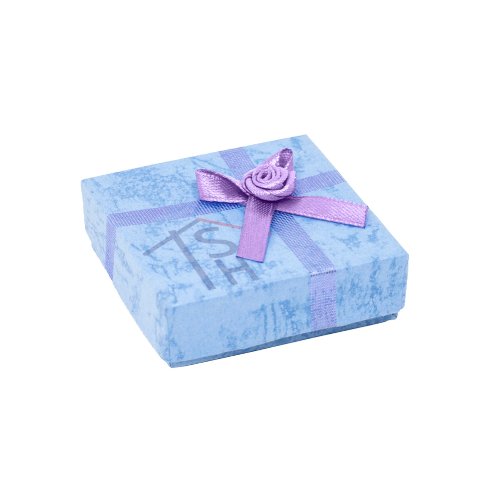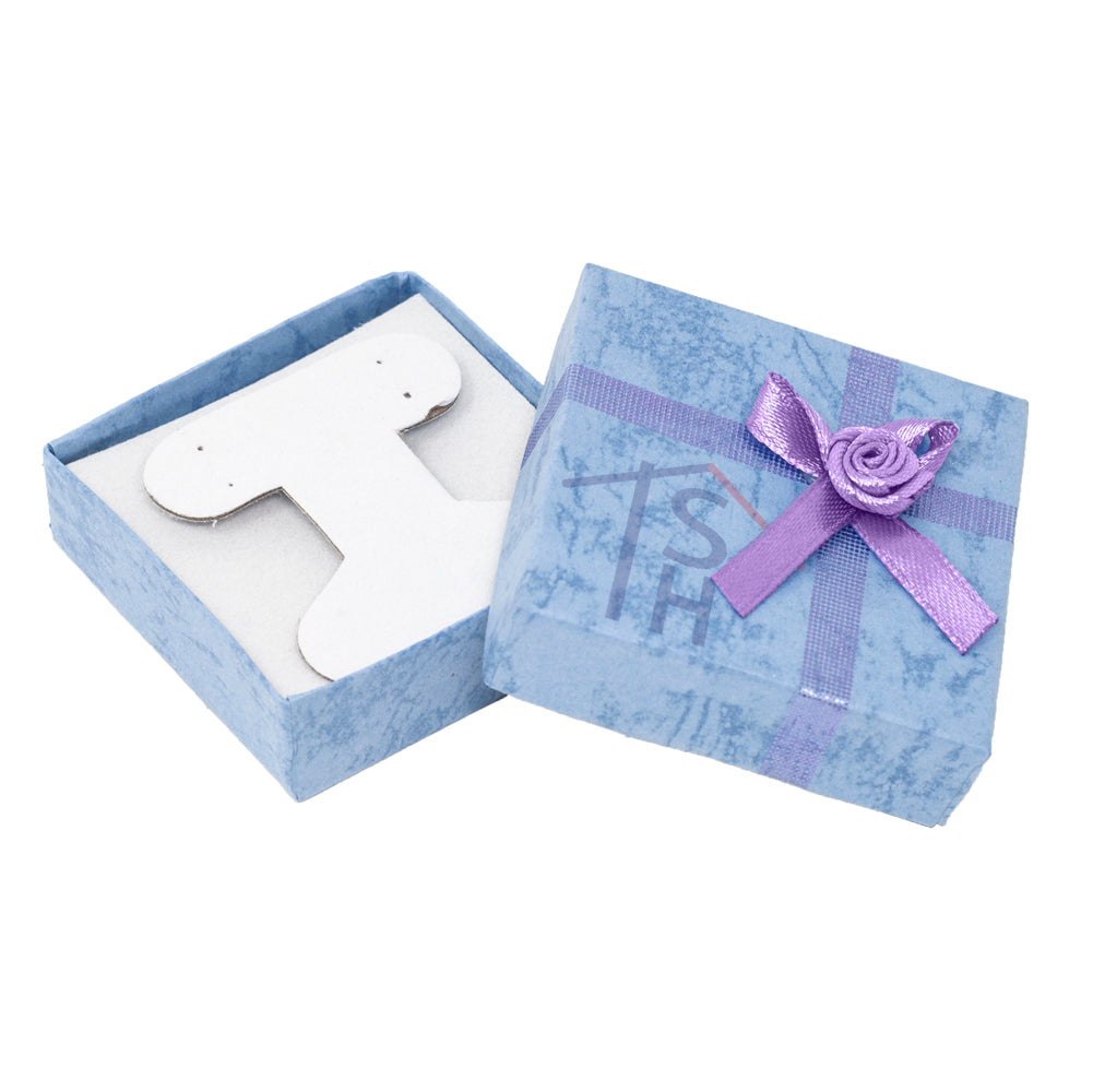 Earring Tree Box- 2 3/8″ x 2 3/8″ x 3/4″H- 72/Case- Assorted Pastel Colored Boxes in each case. Foam Insert. Box Includes Ribbon and Flower Bow Tie.