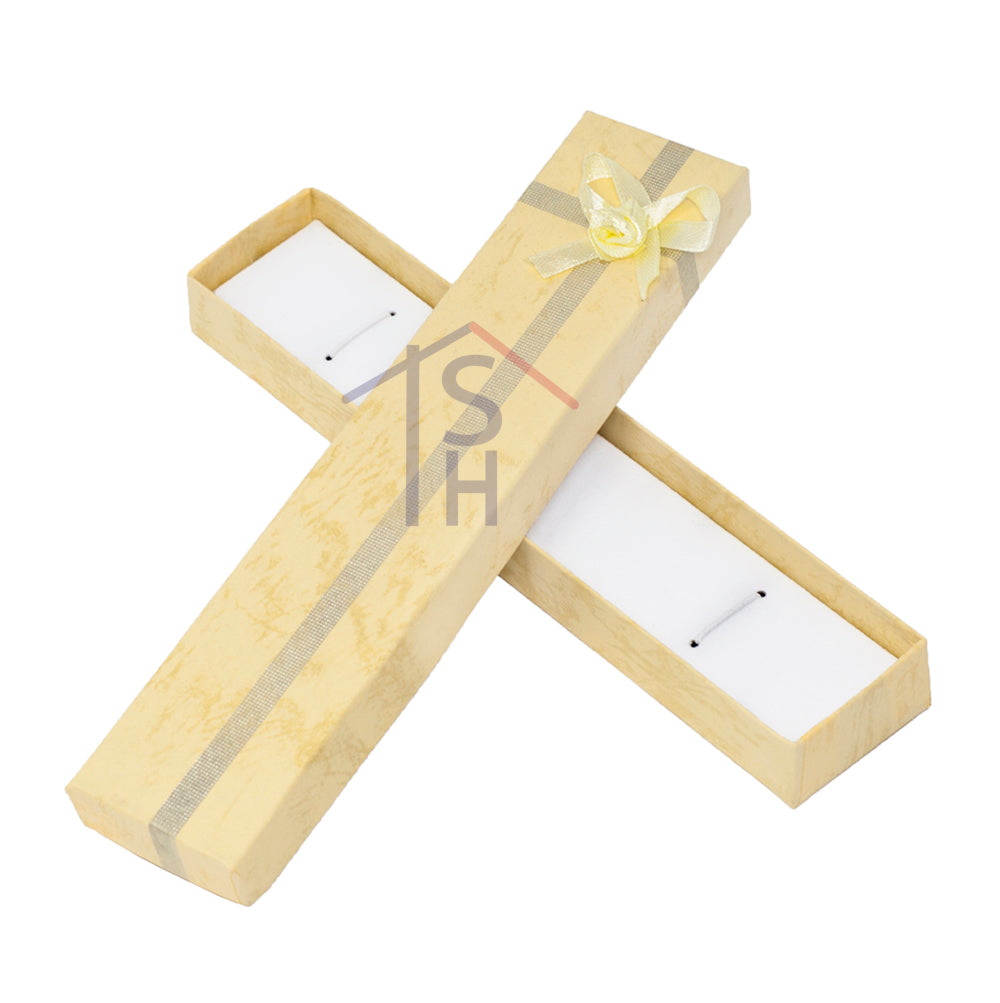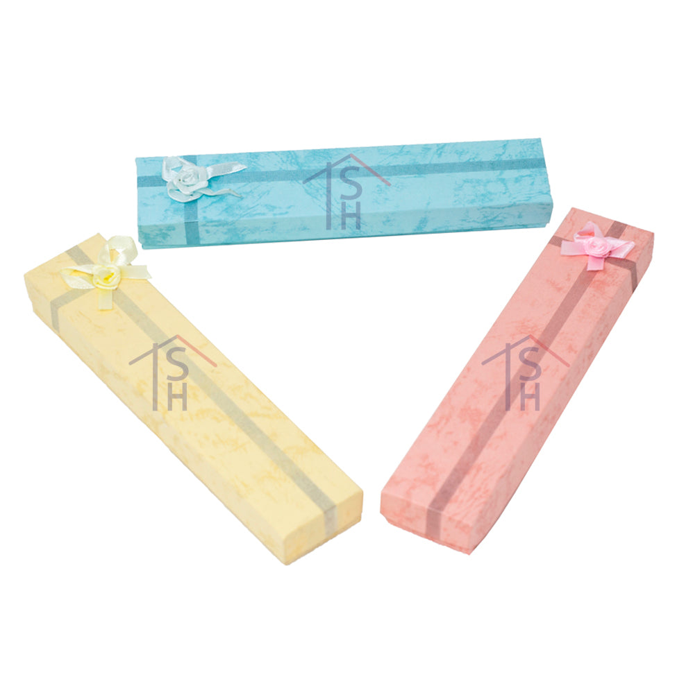 Bracelet/Watch Box- 7 7/8″ x 1 5/8″ x 7/8″H- 72/Case- Assorted Pastel Colored Boxes in each case. Foam Insert. Box Includes Ribbon and Flower Bow Tie