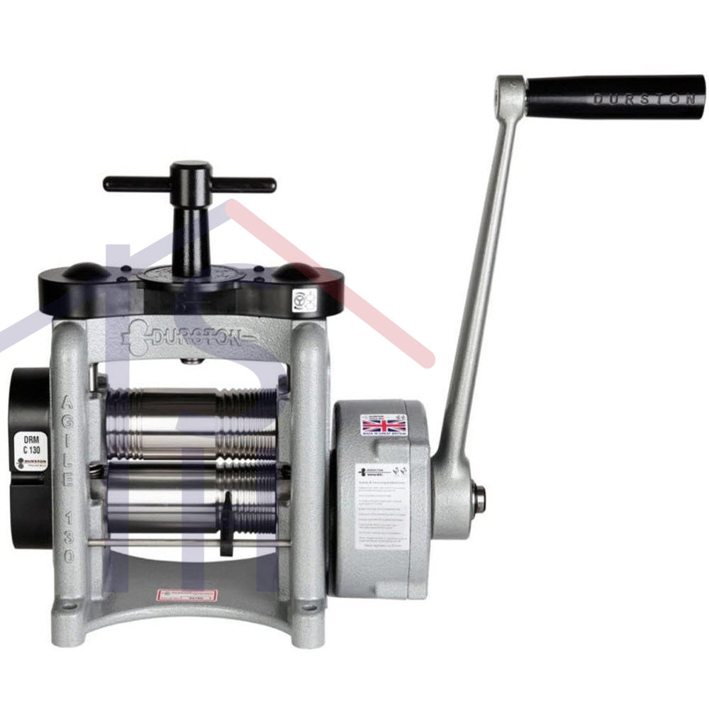 Agile Rolling Mill – Agile C130 rolling mill from Durston Tools. The all-new Agile 130 Rolling Mill is a special edition to the range of Durston rolling mills, coming from the same stable as the bestselling combination mills such as the DRM C130 RE. It is lighter by having thinner frames, but where the mill needs its strength, it’s entirely designed to support the load without any compromise on quality. A traditional T-bar replaces the hand wheel, and you’ll find five half rounds as part of the primary roller. The rolls are specially induction hardened to 64 RC.