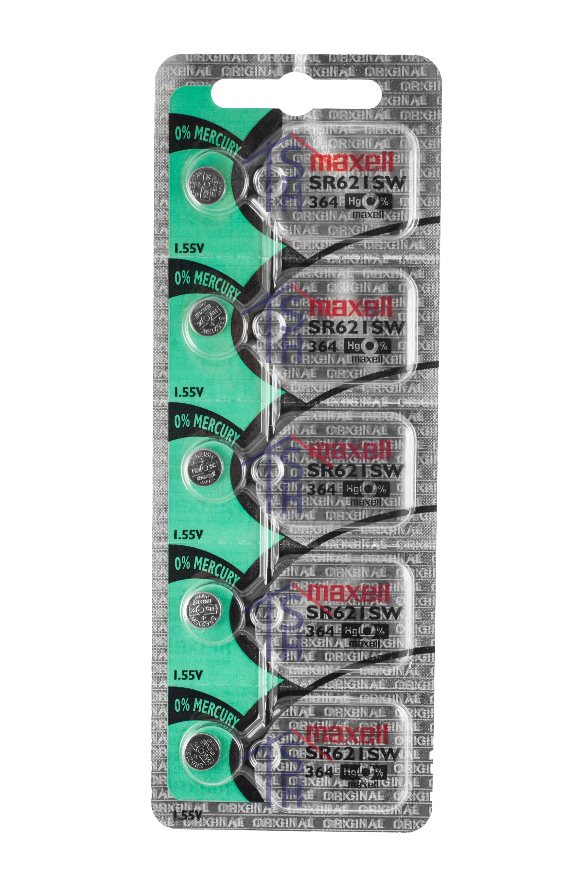 Maxell Silver Oxide Watch Battery SR621SW Low Drain Replaces 364This battery is a Silver-Oxide cell normally used in watches, with a shelf life of 5+ years. Other applications may include calculators, film cameras, medical instruments, cash registers, or FA instruments (measuring instruments, onboard microcomputers, sensors). This is a “SW” low drain battery. Low drain batteries are best used in devices that use a small amount of power over a long period of time: Analog watches, TV remotes, alarm clocks, etc. This is in comparison to high drain batteries, which are for devices with a continuous, low power use and occasional high peaks: Analog and digital watches with extra functions (backlight, alarm), pocket calculators, electronic games, cameras, etc. Specifications Chemistry: Silver Oxide Voltage: 1.55VDiameter: 6.8 mm Height: 2.2 mm Includes 5 batteries Features Low Drain Type – Best used with analog watches. A flat discharge curve during discharge supplies a stable voltage until the end of the discharge life High-energy density per unit volume provides 2x the amount of energy capacity as button-type alkaline batteries Featuring Maxell’s original leak-resistant processing Also Known As: 1175SO, 164, 280-34, 362, 364, 364BP, 531, 602, AG1, D 364, D364, GP364, L621, LR60, LR620, LR621, R 364/31, RW 320, S621S, SB-AG/DG, SG1, SP364, SR 60, SR 621 SW, SR60, SR60L, SR621, SR621SW, T, V364Need more than one? We offer great discounts on quantity orders and Discount Shipping offers available. Specifications Brand: Maxell Output Voltage: 1.55V Chemistry: Silver Oxide Battery Size: 364 Height: 2.2mm Diameter: 6.8mmCompatibilityAlba: V782, V782X Alba Seiko: V782 X Armitron: 75/2032-33 Awi: S29 Bulova: 621 Casio: 1346 Module, 1794 Module, 2301, 2301 Module, 2364 Module, 5071 Module, 5072 Module, 5170, 705 Module, 7N01D, 7N07D, 7N08D, 7N82D, 7N83D, 7N89D, A621, AG621, EF305, EF305-1AV, EF305-9AV