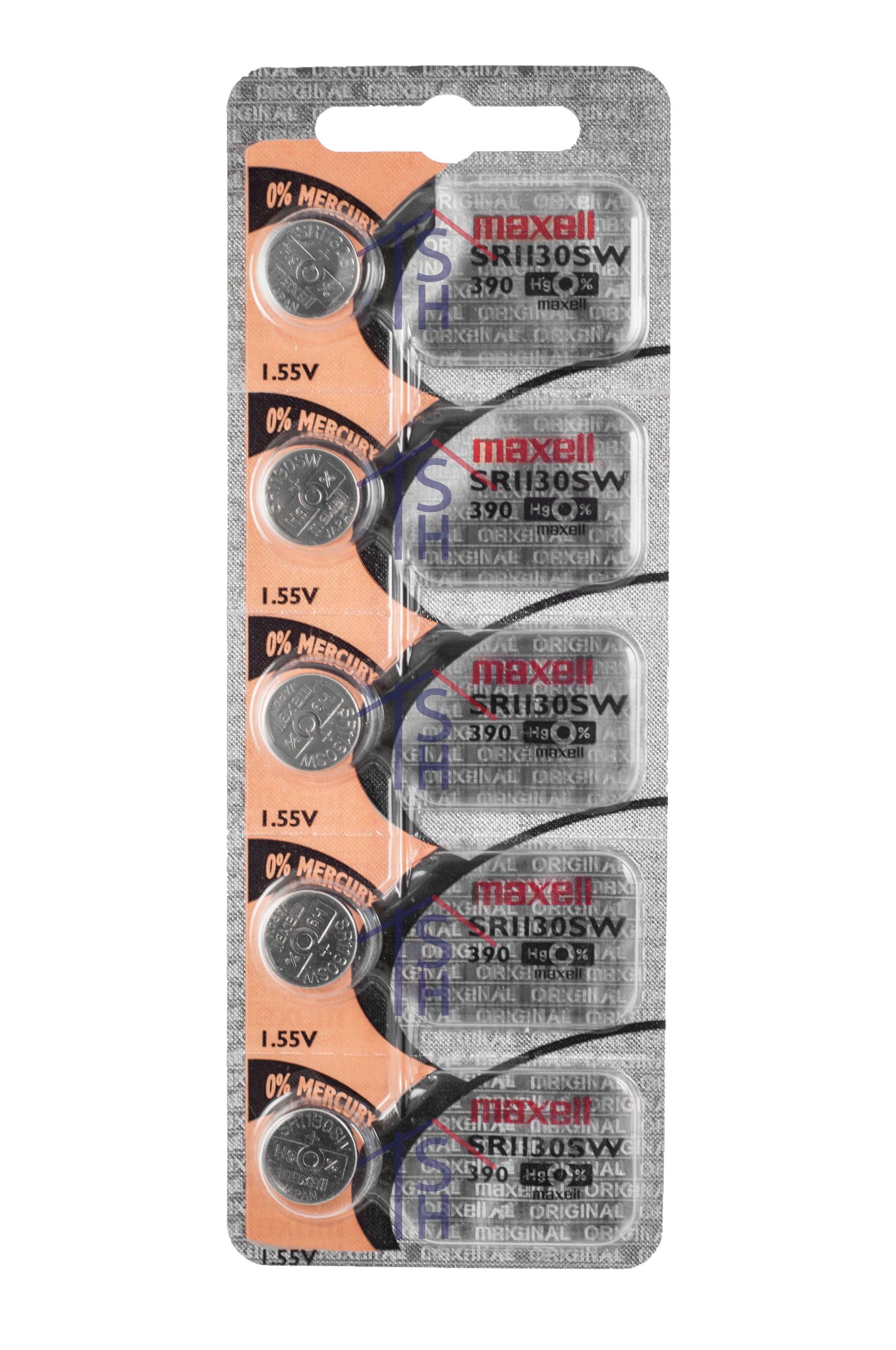 Maxell Silver Oxide Watch Battery SR1130W High Drain Replaces 389 This battery is a Silver-Oxide cell normally used in watches, with a shelf life of 5+ years. Other applications may include calculators, film cameras, medical instruments, cash registers, or FA instruments (measuring instruments, onboard microcomputers, sensors). This is a “W” high drain battery. High Drain batteries are for applications with a continuous, low power consumption and occasional high peaks: Analog and digital watches with extra functions (backlight, alarm), pocket calculators, electronic games, cameras, etc. This is in comparison to low drain batteries, which are best used in devices that use a small amount of power over a long time: Analog watches, TV remotes, alarm clocks, etc. Specifications Chemistry: Silver Oxide Voltage: 1.55V Diameter: 11.6 mm Height: 3.05 mm Features High Drain – Best used with multi-function watches incorporating an alarm, illumination light, etc. A flat discharge curve during discharge supplies a stable voltage until the end of the discharge life High-energy density per unit volume provides 2x the amount of energy capacity as button-type alkaline batteries Featuring Maxell’s original leak-resistant processing Also Known As: 10 L 122/D 389, 10 L 122/D 390, 10L/122, 1159SO, 1168A, 189, 189-1, 280-15, 280-24, 389, 389A, 389BP, 390, 390A, 534, 554, 603, 615, 626, A05, A120, AG10, D189, D189A, D389, D390, G10, G10A, GP189, GP389, GP390, GP89A, GS10, KA54, L1131, LR1130, LR54, M, M BATTERY, R 389/17, R 390/11, RW 39, RW 49, RW49, RW89, S1131E, S1131S, SB-AU, SB-BU, SG10, SP390, SR 1130 SW, SR 1130 W, SR 54, SR1130, SR1130SW, SR1130W, SR1130W/SW, SR54, V10GA, V389, V390