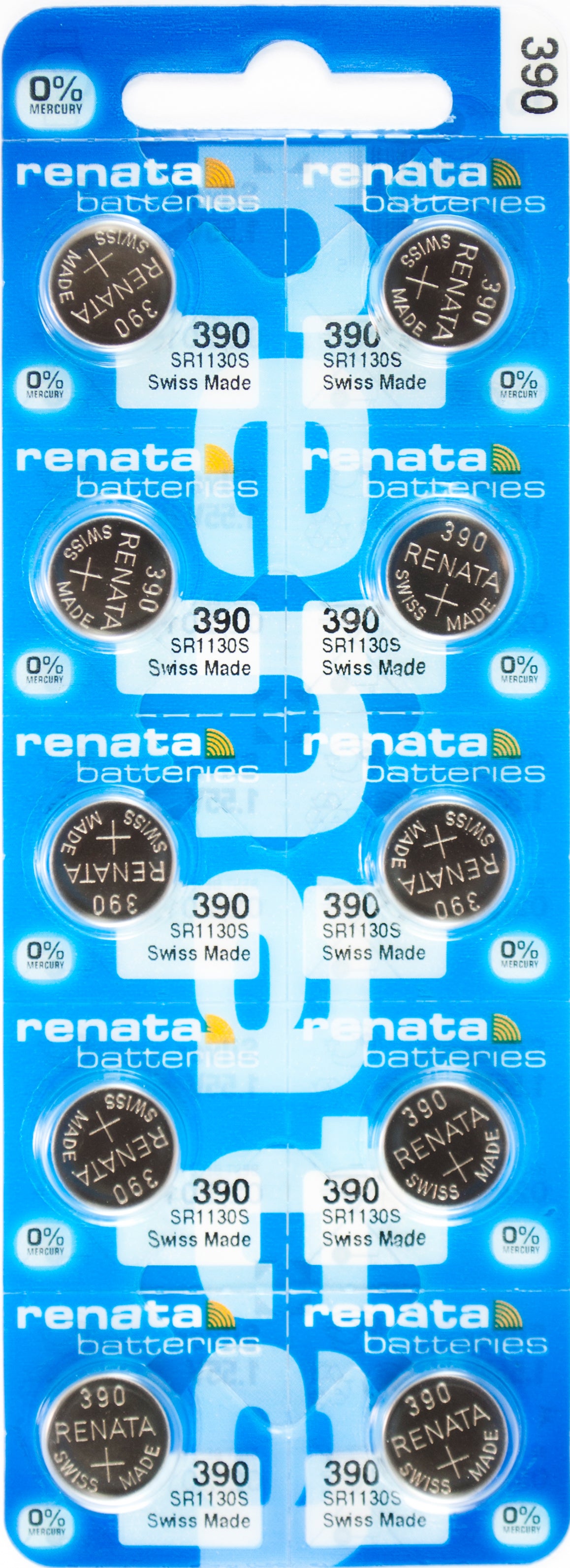 Renata 390 Swiss Battery. This is a new #390 (SR1130SW) Renata watch battery These batteries are commonly required for Swatch, Fossil, Timex and Casio popular brands Renata has first hand knowledge of what a high quality watch battery must stand for Optimized volume/capacity ratio Dimensional precision and stability High capacity retention on storage (low self-discharge) Excellent reliability thanks to a uniformly high quality level State of the art leak proofness thanks to a sophisticated sealing process Renata’s professional expertise is worth having on your side and in your watches