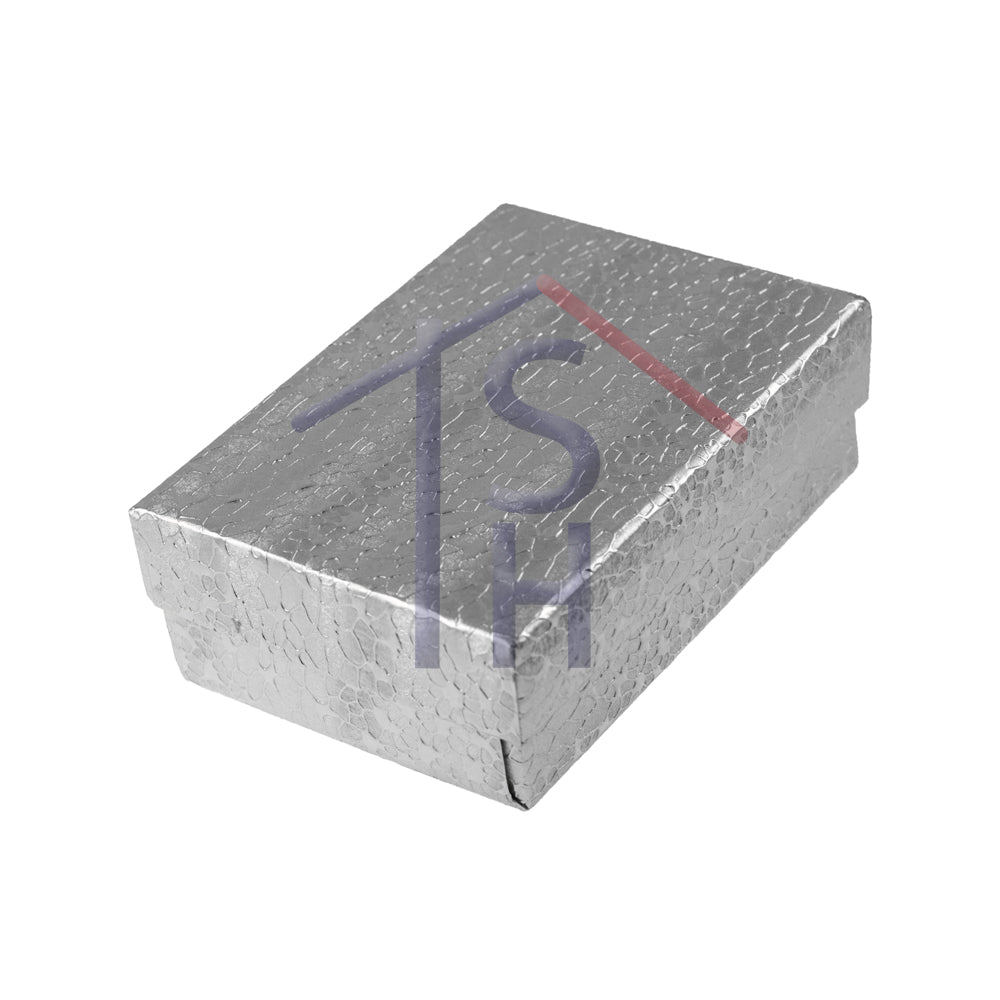 SILVER TEXTURE Paper Cotton Filled Boxes, 3 1/4”W x 2 1/4”D x 1”H, 100pcs/box