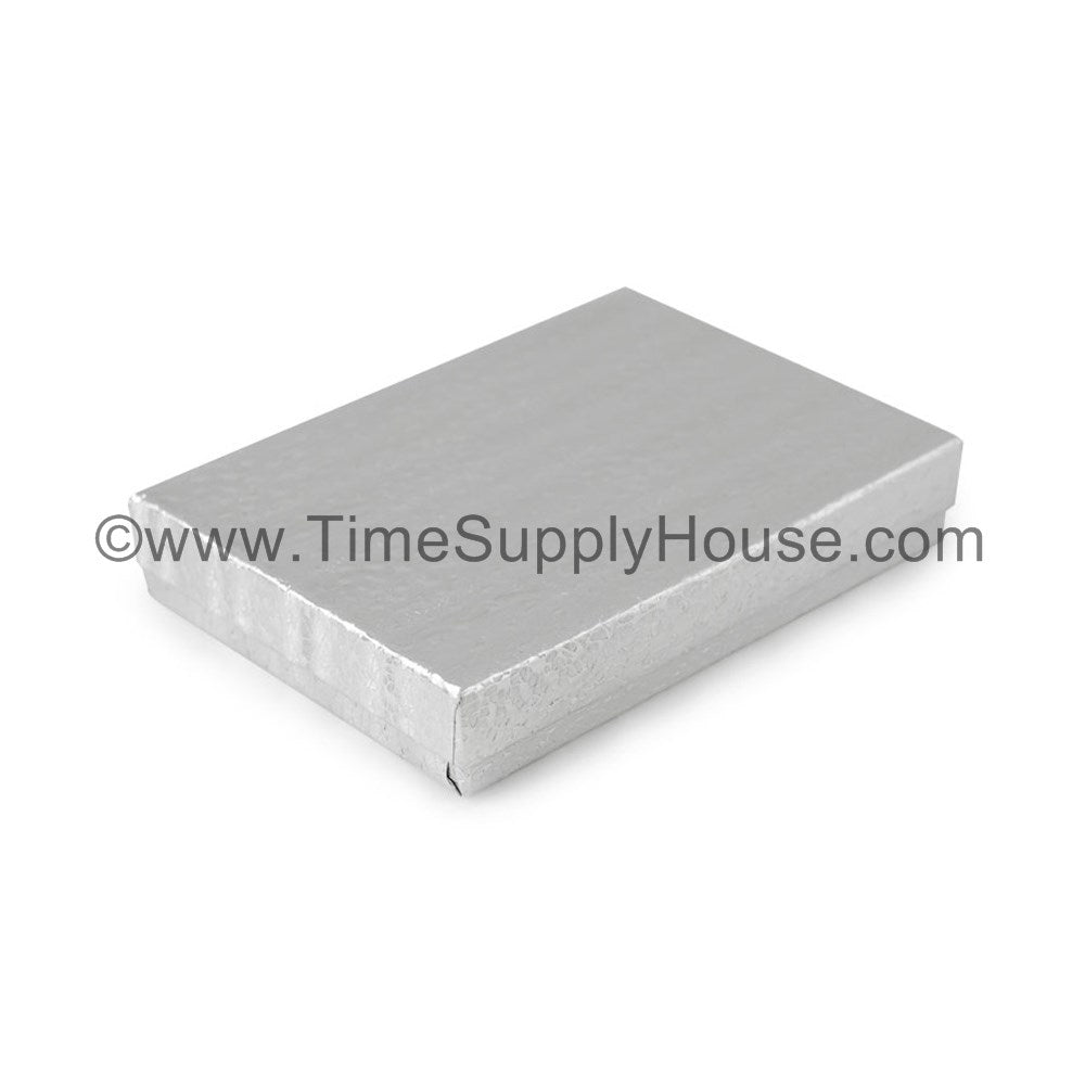 SILVER TEXTURE Paper Cotton Filled Boxes, 6 1/8″W x 5 1/8″D x 1 1/8″H, 100pcs/box