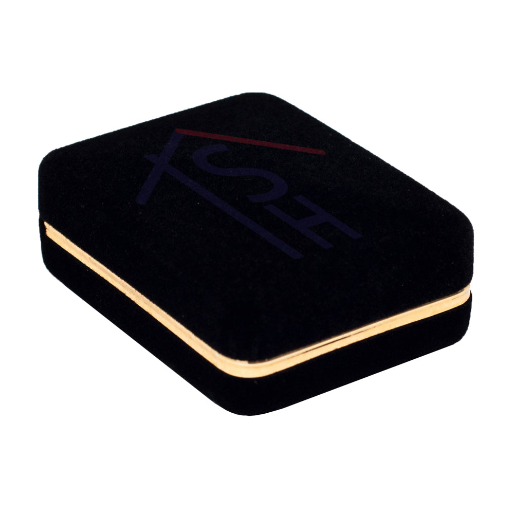 Feature rich velvet finished metal boxes with white satin lid lining insets.